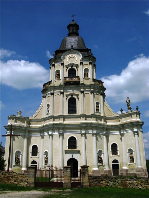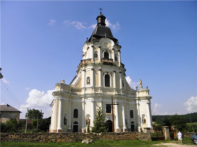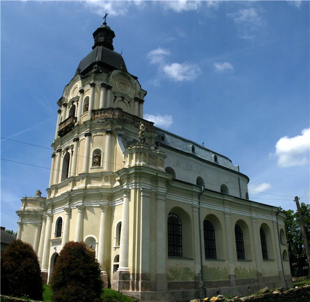 Новий мурований костел почали зводити у 1761 році на кошти графині Людвики Потоцької. Архітектором був чоловік її онучки, Август Фридерик Мошинський. За його основу архітектор взяв костел при королівському палаці в Дрездені. Наріжний камінь у будівництво майбутньої святині заклав Львівський архієпископ Вацлав Сераковський. Освятили добудований у 1779 році під титулом Пресвятої Трійці.