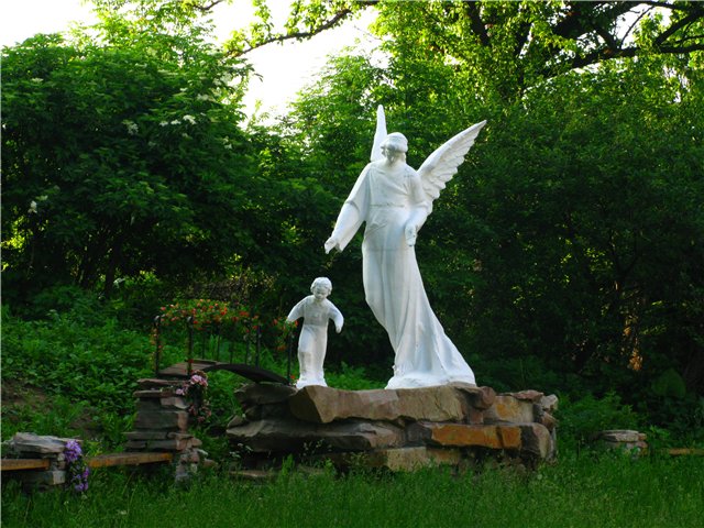 Поруч, над джерелом, симпатична скульптурна група "Ангел з дитиною":